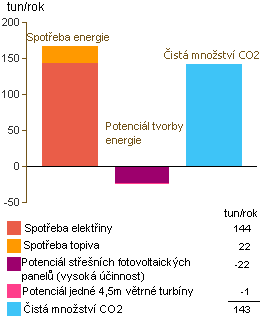| Čistá množství CO2 | Celkové emise CO2 způsobené spotřebou energie projektu mínus potenciál tvorby energie. |