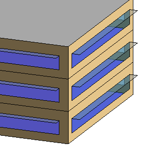 V koncepčním modelu jsou panely usměrňující světlo pouze vnější a nelze s nimi manipulovat samostatně bez jejich oken. Můžete však ručně vytvořit panely usměrňující světlo nebo další typy stínění (například markýzy) pro koncepční model použitím povrchů objemu. Další informace naleznete v části Použití panelů usměrňujících světlo.