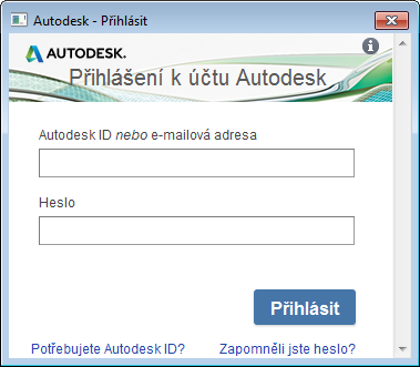 Chcete-li tuto funkci použít, musíte se přihlásit ke službě Autodesk 360. Kliknutím na tlačítko Přihlásit se se přihlaste ke službě Autodesk 360 a zadejte své ID a heslo společnosti Autodesk. |