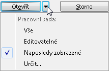 Otevření pracovních sad pomocí dialogu Otevřít