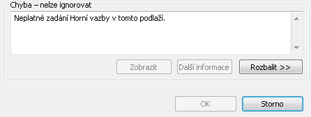 Pokud během vaší práce dojde k chybě, aplikace Revit zobrazí dialogy, který uvádějí vzniklé problémy.