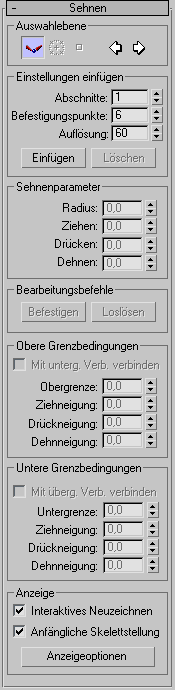 Steuerelemente für Unterobjekte der Ebene "Sehnen" befinden sich im Rollout "Sehnen".