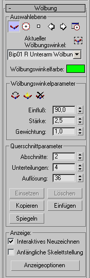 Anmerkung: Laut Vorgabe wird mit Physique genau ein Wölbungswinkel in der anfänglichen Skelettstellung erstellt; der Arm ist in dieser Stellung normalerweise gestreckt.