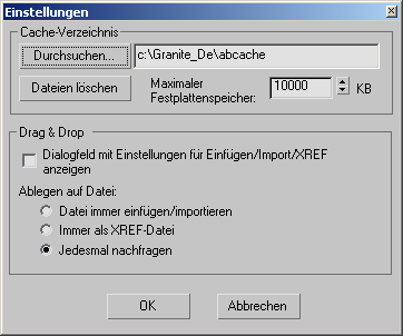 Zeigt das Dialogfeld mit Einstellungen für Zusammenführen/Import/XREF an, wenn Sie eine Datei in einem Ansichtsfenster abgelegt haben.