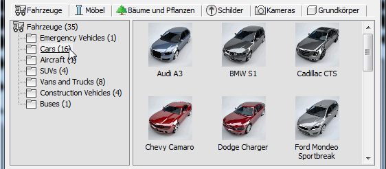- Markieren Sie in der Liste "Elemente" den Eintrag "Zufällig [Autos]".