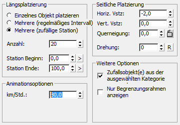 - Bereich "Längsplatzierung": Wählen Sie "Mehrere (zufällige Station)" und achten Sie darauf, dass die Anzahl auf den Vorgabewert 20 eingestellt ist.