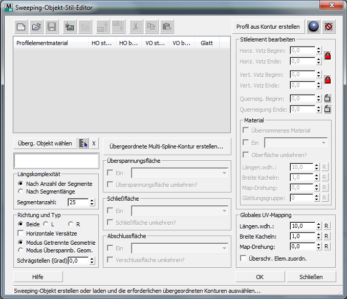 Schließen Sie den Sweeping-Objekt-Stil-Editor nicht. Sie benötigen ihn in den folgenden Verfahrensbeschreibungen.