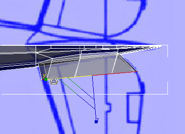 Drehen Sie die Flächen des Leitwerks im Ansichtsfenster "Oben" um die Z-Achse, damit sie besser dessen Richtung in der Blaupause entsprechen. Um ungefähr 5 Grad ist ausreichend.