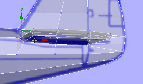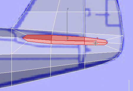 - Führen Sie denselben Vorgang für die drei Scheitelpunkte an der Vorderkante des Höhenleitwerks durch (Sie müssen sie im Ansichtsfenster "Oben" wahrscheinlich nicht sehr weit verschieben).
