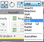 (Auswählen und verschieben) und wählen dann "Lokal" als Transformationskoordinatensystem aus (nach dem Drehen der Flächen können Sie sich nicht mehr auf die Ansichtskoordinaten stützen).