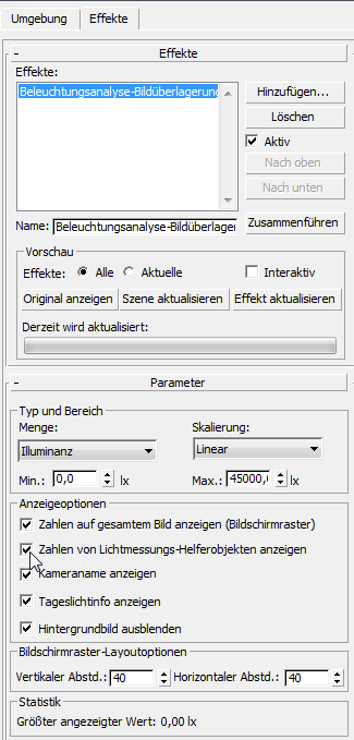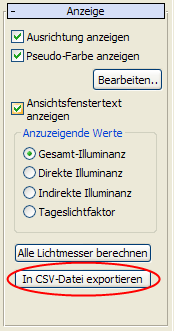 3ds Max speichert die vom Lichtmesserobjekt generierten Daten im CSV-Format im \export-Ordner Ihres Projektverzeichnisses.