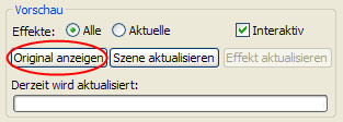 Gruppe "Vorschau" auf "Original anzeigen", um die Szene ohne die Beleuchtungsdaten anzuzeigen. Klicken Sie auf "Effekte zeigen", um die Daten erneut anzuzeigen.