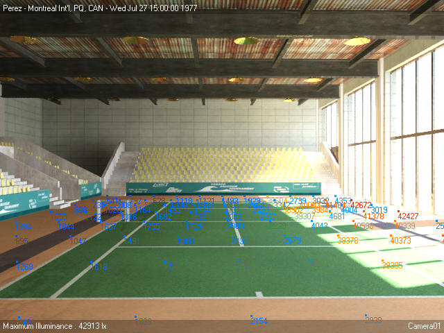 Nun werden nur die Luminanzwerte angezeigt, die von den Sampling-Punkten des Lichtmessers erstellt wurden, den Sie für die Tennisplatzoberfläche erstellt haben.