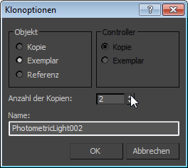 3ds Max öffnet das Dialogfeld "Klonoptionen".