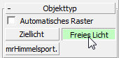 Klicken Sie im Rollout "Objekttyp" auf "Freies Licht", um die Option zu aktivieren.