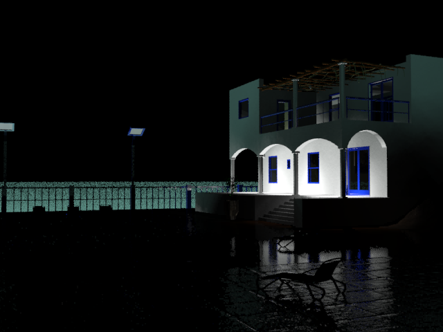 - Speichern Sie die Szene als my_villa_nighttime.max.