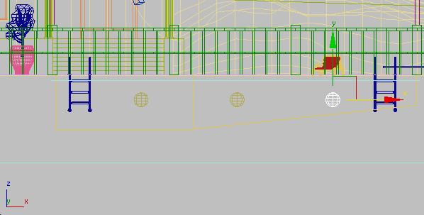 Die Szene nimmt allmählich Gestalt an. Ihre nächste Aufgabe besteht darin, Lichtobjekte zu den Lampenpfosten hinzuzufügen, die den Pool umgeben.