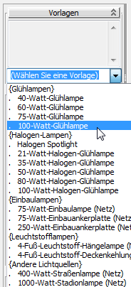 Rollout "Vorlagen", und wählen Sie die Option "100-Watt-Glühlampe".