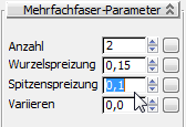 - Stellen Sie im Rollout "Lockenparameter" den Wert für "Wurzellockung" auf 0,5 und den Wert für "Spitzenlockung" auf 3,0 ein.