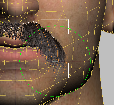 Bürsten Sie die linke Seite des Oberlippenbarts (rechte Seite im Ansichtsfenster) so, dass er vom Gesicht absteht.