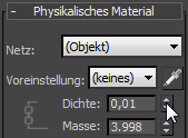 Modifikatorgruppe zum Rollout Physikalisches Material und passen den Wert für Dichte an. Am einfachsten bewerkstelligen Sie dies, indem Sie mit der rechten Maustaste auf das Zahlenauswahlfeld klicken.