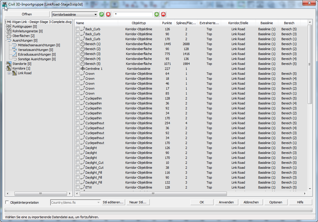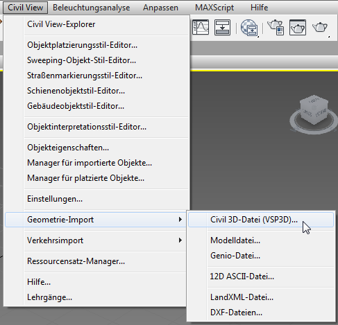 3ds Max Design öffnet die Civil 3D-Importgruppe.