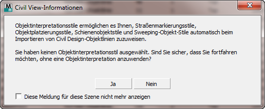 3ds Max Design fordert Sie auf, "Stile für Objektinterpretation" zu verwenden.