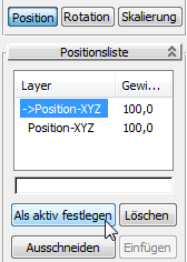 - Markieren Sie im Rollout "Positionsliste" den zweiten "Position-XYZ"-Controller, und klicken Sie auf "Als aktiv festlegen".