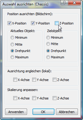 Bereich "Position ausrichten" sicher, dass die Steuerelemente "X-Position" und "Y-Position" aktiviert sind und das Steuerelement "Z-Position" deaktiviert ist.