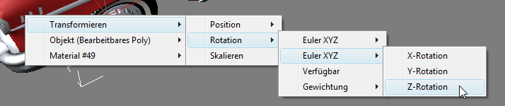 - Klicken Sie auf eines der Autoräder, und wählen Sie "Transformieren"