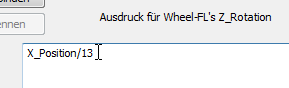 Der Ausdruck sollte nun "X_Position/13" lauten, also die Entfernung geteilt durch den Radius des Rades.