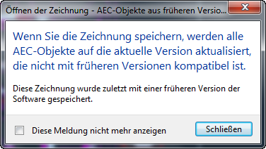 Wenn Sie eine aktuelle Version von AutoCAD verwenden, wird diese Meldung angezeigt: