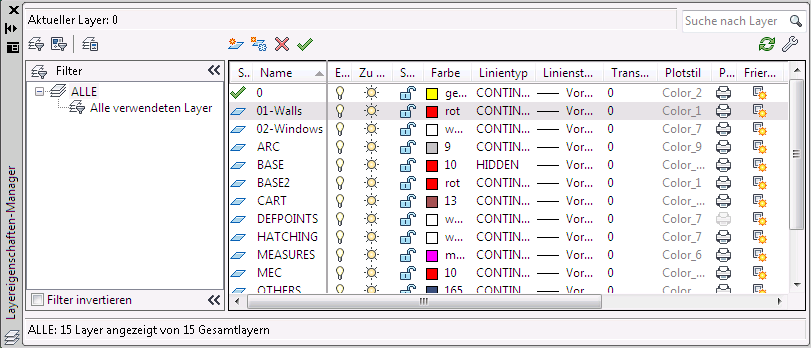 - Wählen Sie im Layereigenschaften-Manager den Layer 01-Walls aus.