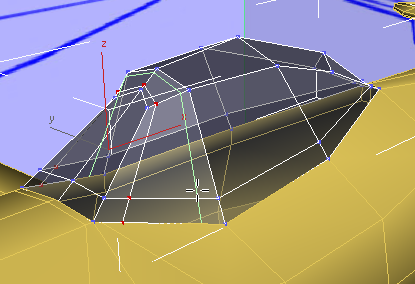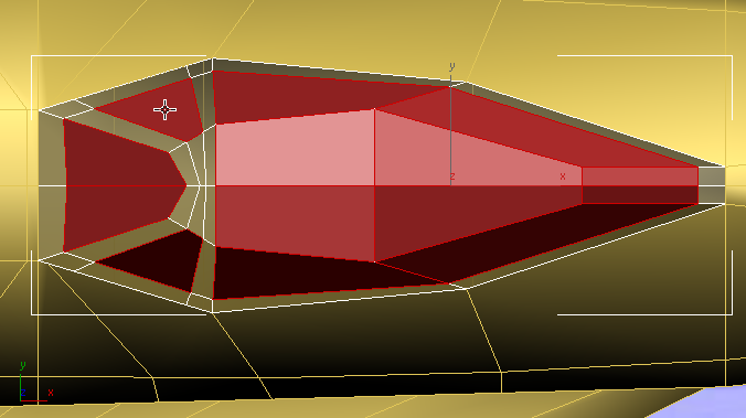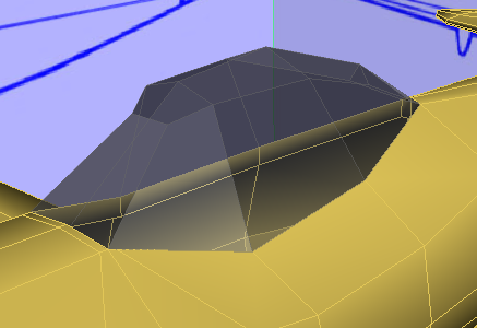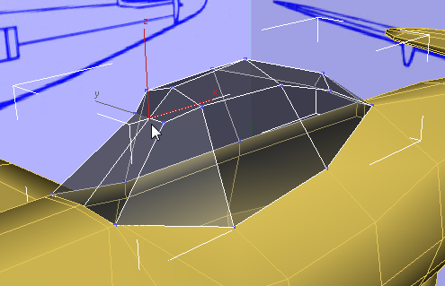 -TASTE auf die Polygone, die den Glaskomponenten der Haube entsprechen. Sie werden im Ansichtsfenster "Oben" arbeiten müssen, um die Polygone auszuwählen, die in der Perspektivansicht nicht sichtbar sind.