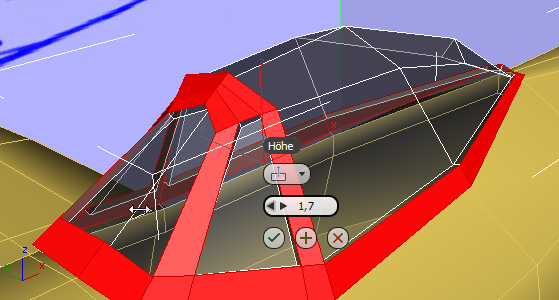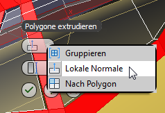 - Verwenden Sie das zweite Steuerelement des Caddys, um die Polygone um ca. 1,7 Einheiten zu extrudieren.
