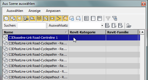 (Nach Namen auswählen), und wählen Sie im Dialogfeld "Aus Szene auswählen" C3Dbaseline-Link Road-Centreline 1.