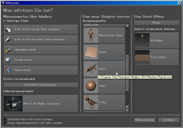 Wenn Sie Autodesk Mudbox 2013 nicht installiert haben, können Sie diese Lektion überspringen.