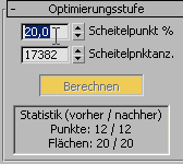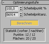 Der Modifikator ProOptimizer analysiert das Modell. Wenn die Berechnung abgeschlossen ist, zeigt das Textfeld unterhalb der Schaltfläche "Berechnen" die Statistik des Modells.
