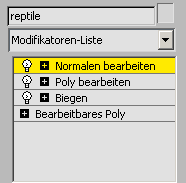 wählen und den Modifikatorstapel betrachten, sehen Sie, dass der Rückimport aus Mudbox dem Stapel zwei Modifikatoren hinzugefügt hat: den Modifikator "Normalen bearbeiten" und den Modifikator "Poly bearbeiten".