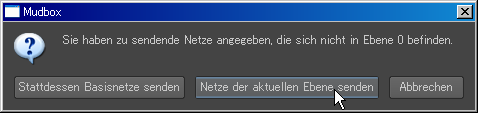 Mudbox zeigt eine Meldung an, dass Sie Netze senden, die sich nicht in der Basisebene befinden. Klicken Sie auf "Netze der aktuellen Ebene senden".