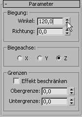 "Ändern", öffnen Sie die "Modifikatoren-Liste" und wenden Sie den Modifikator "Biegen" auf das Modell an.