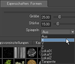 Feld "Größe". Ziehen Sie bei gedrückter B-Taste, um die Größe des Pinsels auf einen Wert zwischen 4 und 5 zu verringern.