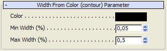 Obwohl im Namen des Shaders das Wort "Farbe" vorkommt, wäre es eigentlich passender, diesen Shader "Breite aus Helligkeit" zu nennen, denn nur die Helligkeit der Farbe wird berücksichtigt.