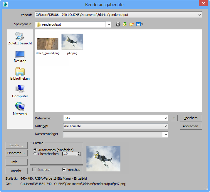 - Geben Sie im Feld "Dateiname" den Namen für die Datei ein, die gerendert werden soll.