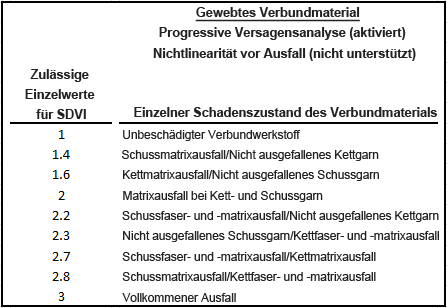 Bei gewebten Verbundmaterialien haben die Zustandsvariablen SVAR2, SVAR3, ..., SVAR90 folgende Bedeutung für statische progressive Schadensanalysen: