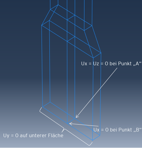 Erstellen Sie Randbedingungen, die möglichst wenig Abhängigkeiten für die Bewegung der unteren Fläche des Prüfstücks schaffen und eine Starrkörperbewegung verhindern.