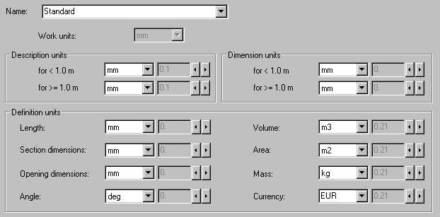 - For Work units, select units for the project. You can change work units in a project only before defining the first arbitrary structure element (wall, foundation, column).