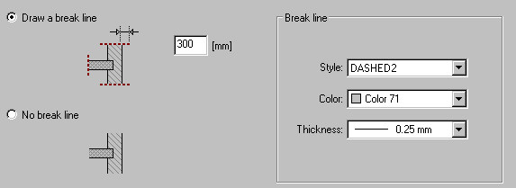 • Draw a break line - select it and break lines will be presented; the following options are available on this tab: