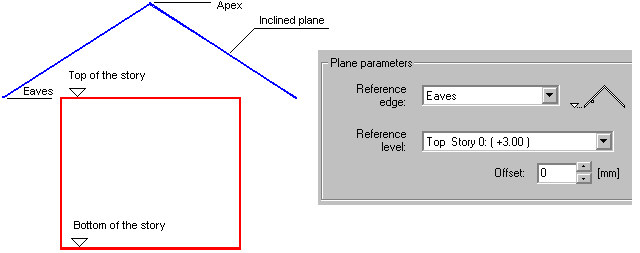 Selected plane parameters: Reference edge: apex Reference level: top story