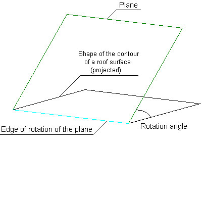 You create an inclined plane of a determined shape and slope by transforming an indicated projection of the roof surface contour. It is defined for a selected (active) story. You can define successive roof surfaces on which elements of the roof will be defined.